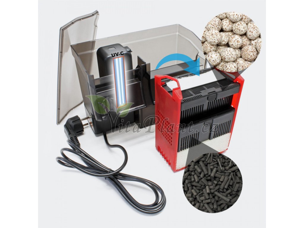 Zařízení obsahuje UV lampu o výkonu 5W a filtr tak zajišťuje nejen mechanickou, ale i biologickou filtraci Vaší nádrže.
